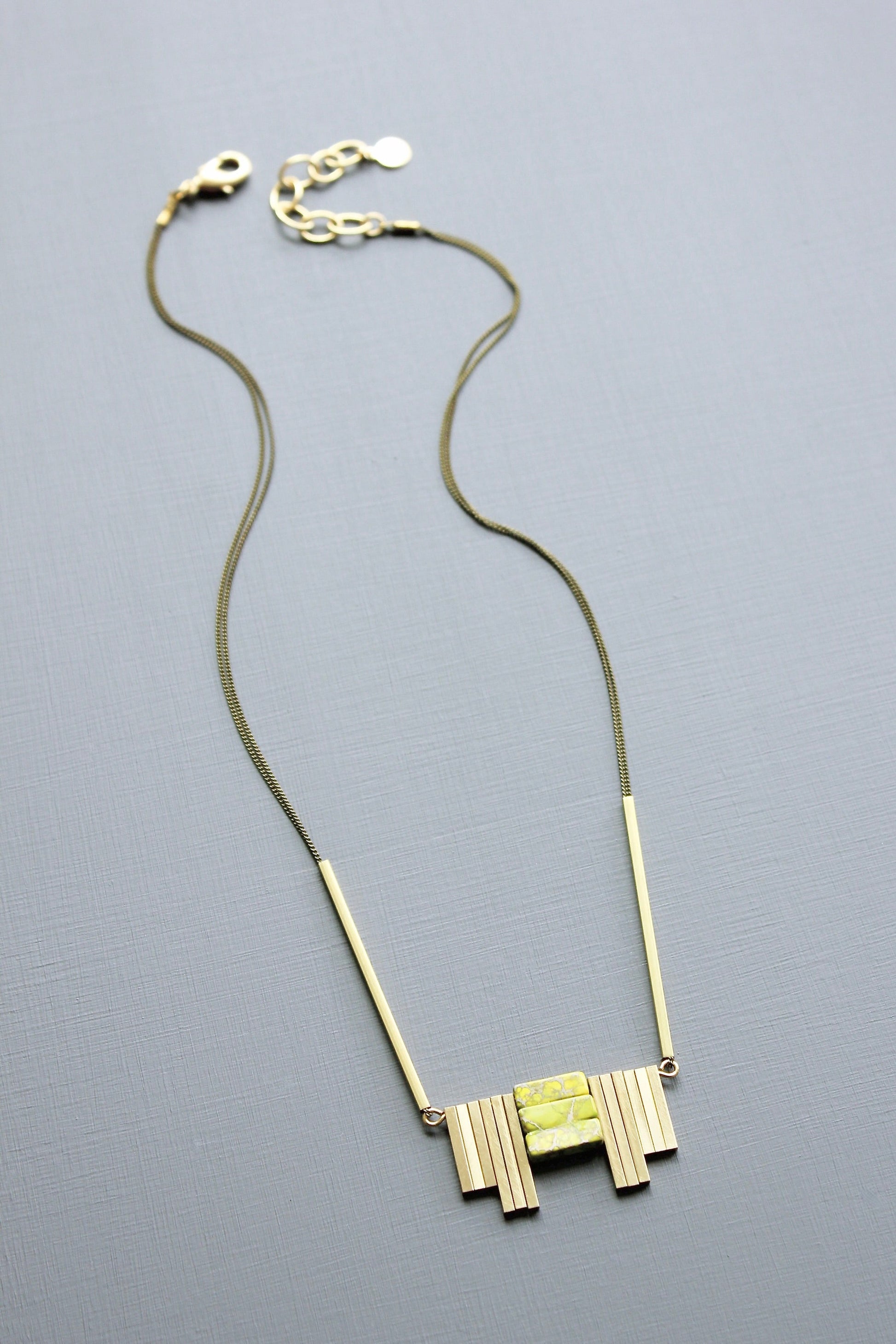 18” necklace with oxidized brass chain and green jasper. 2 inch extender.