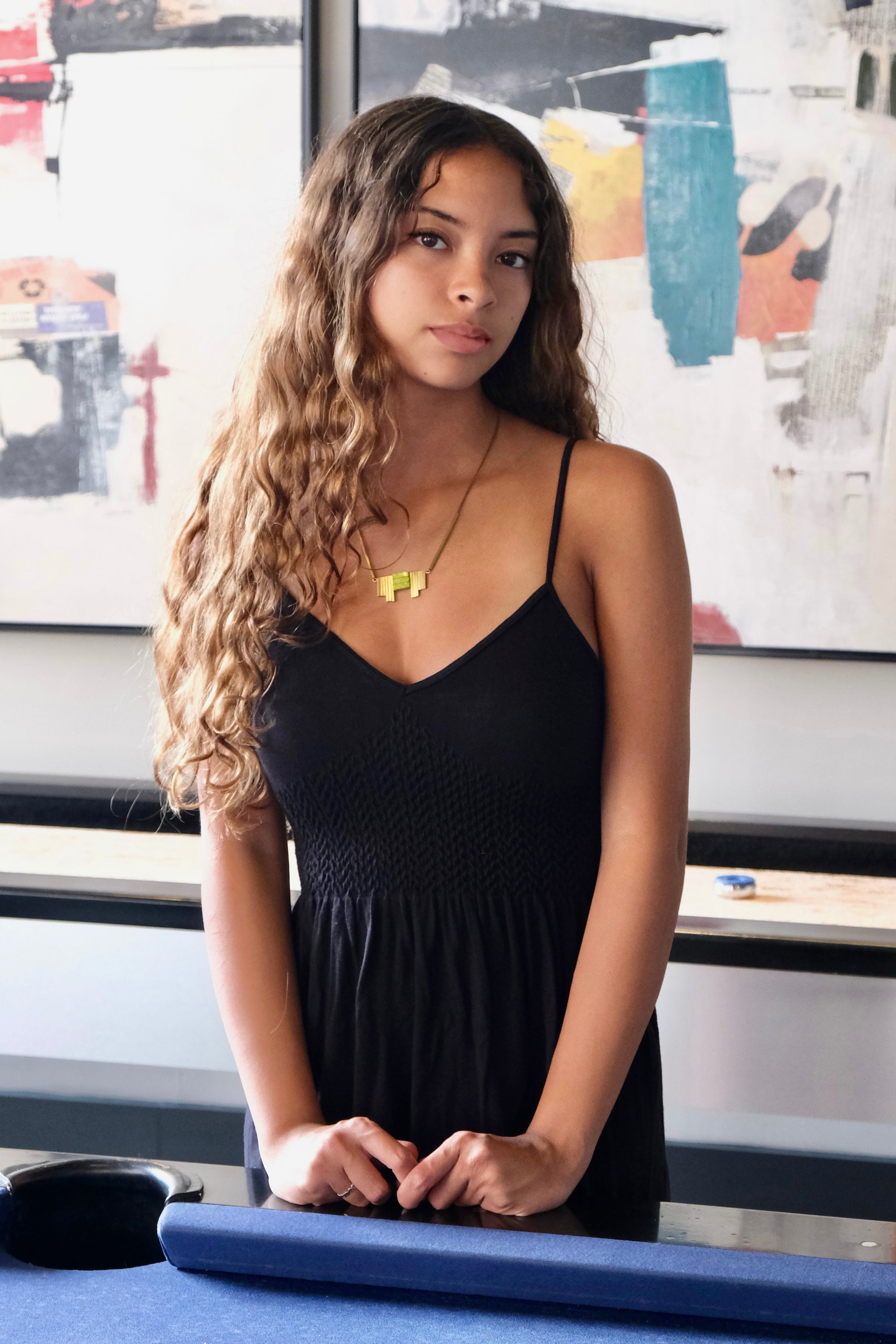 LEX418 Green jasper ArtDeco pendant necklace