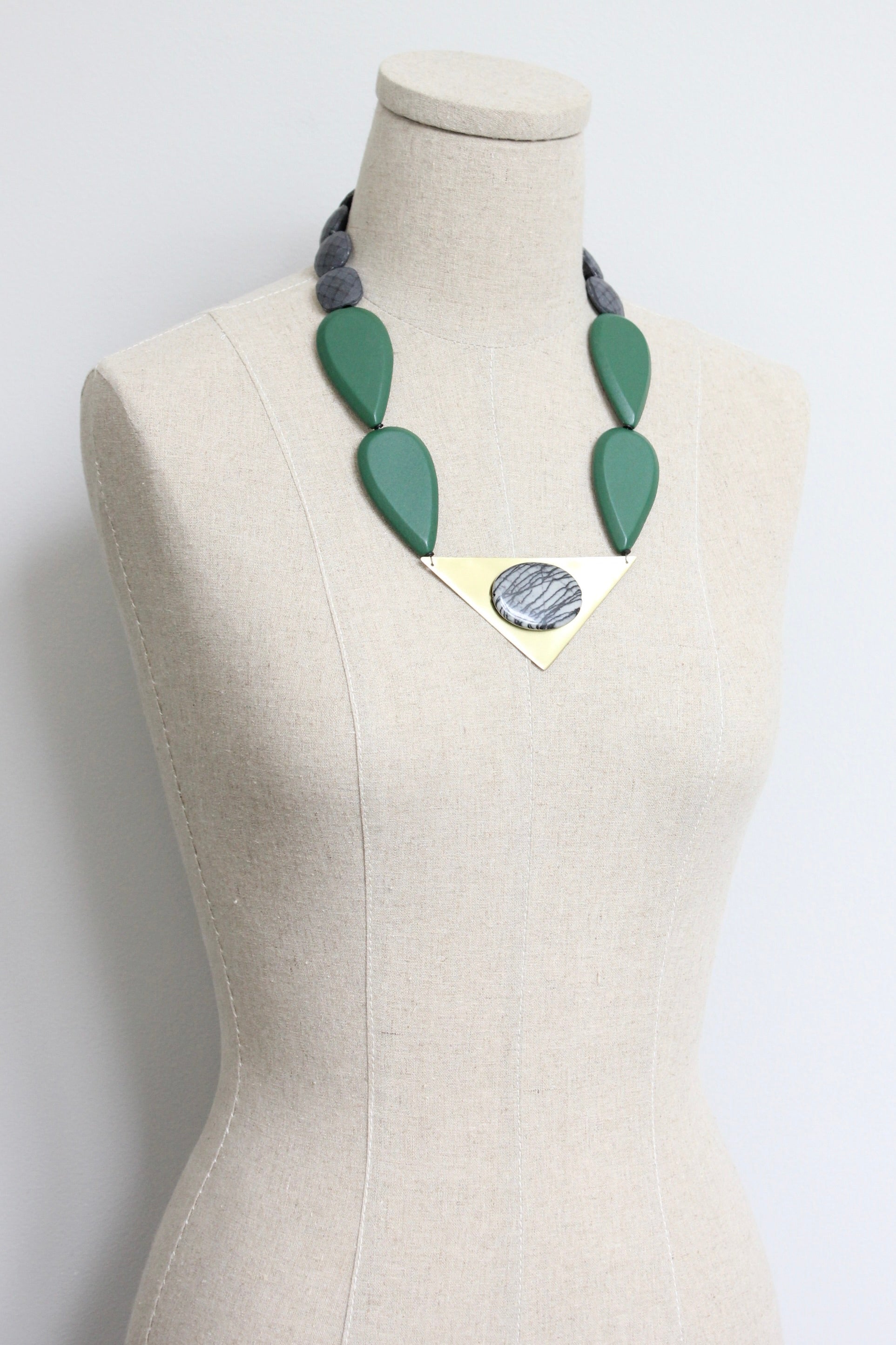 21” necklace with acrylic, painted wood, and jasper necklace. 3 inch extender.