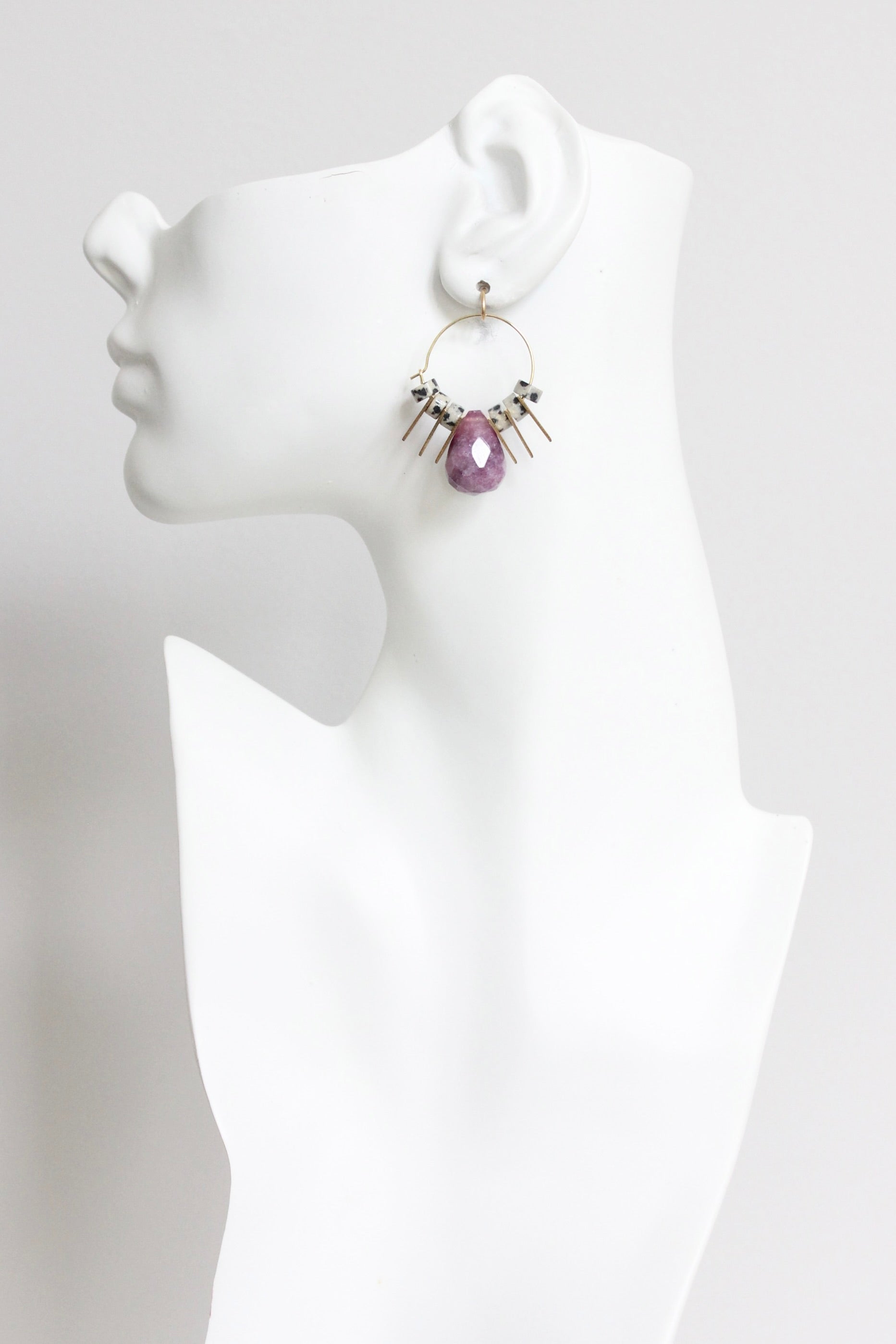 LEXE09 Purple and Dalmatian jasper geometric hoop earrings