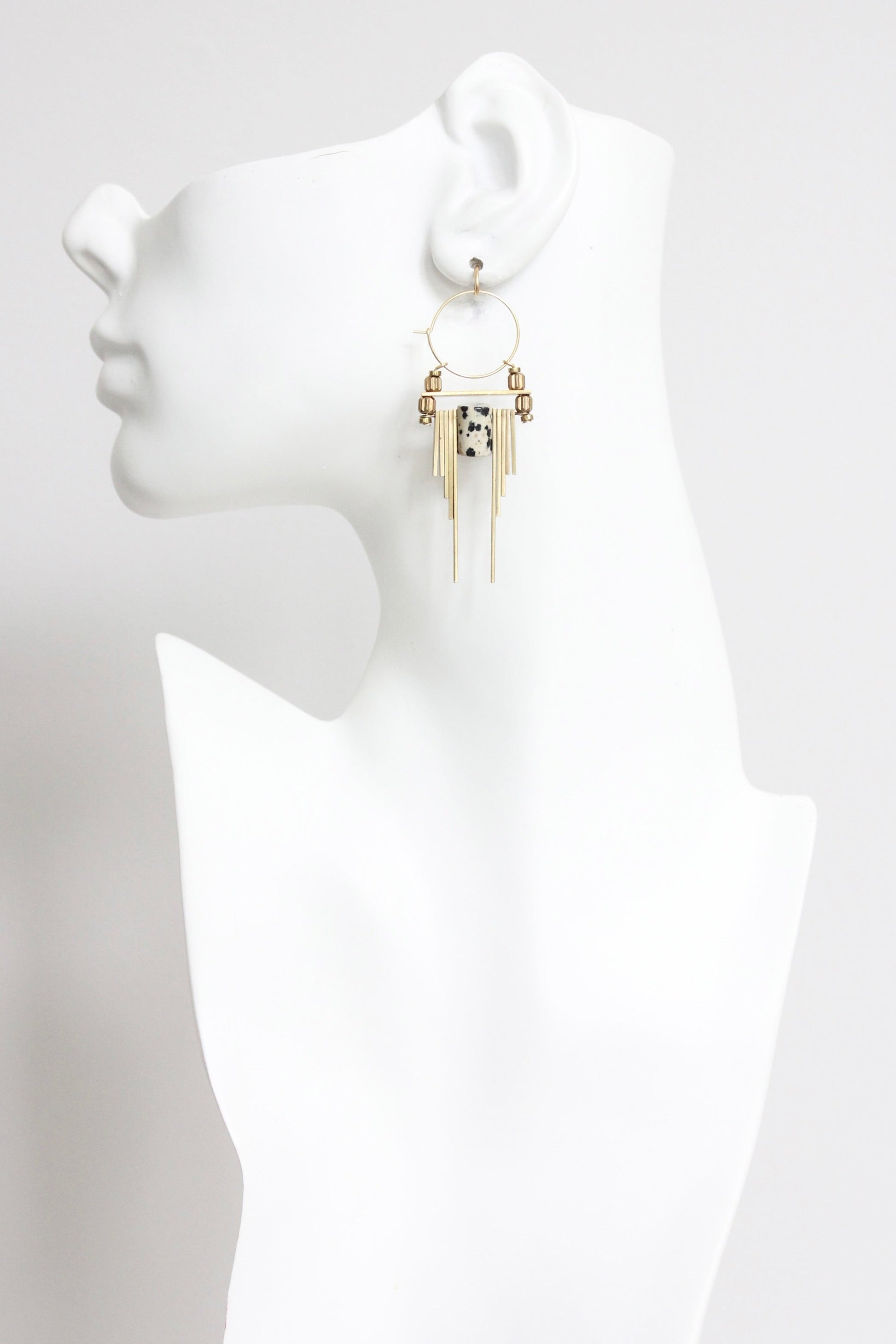 LEXE34 ArtDeco Dalmatian jasper hoop earrings