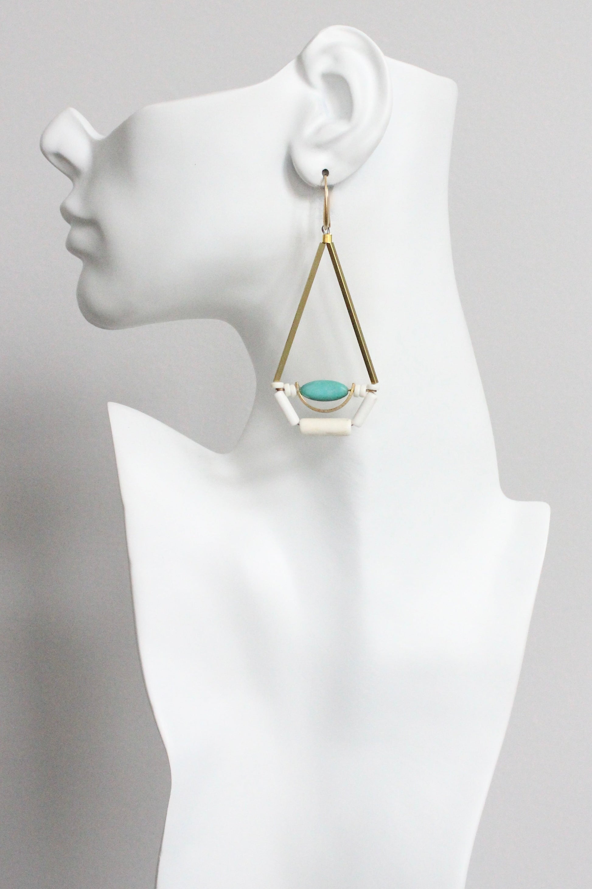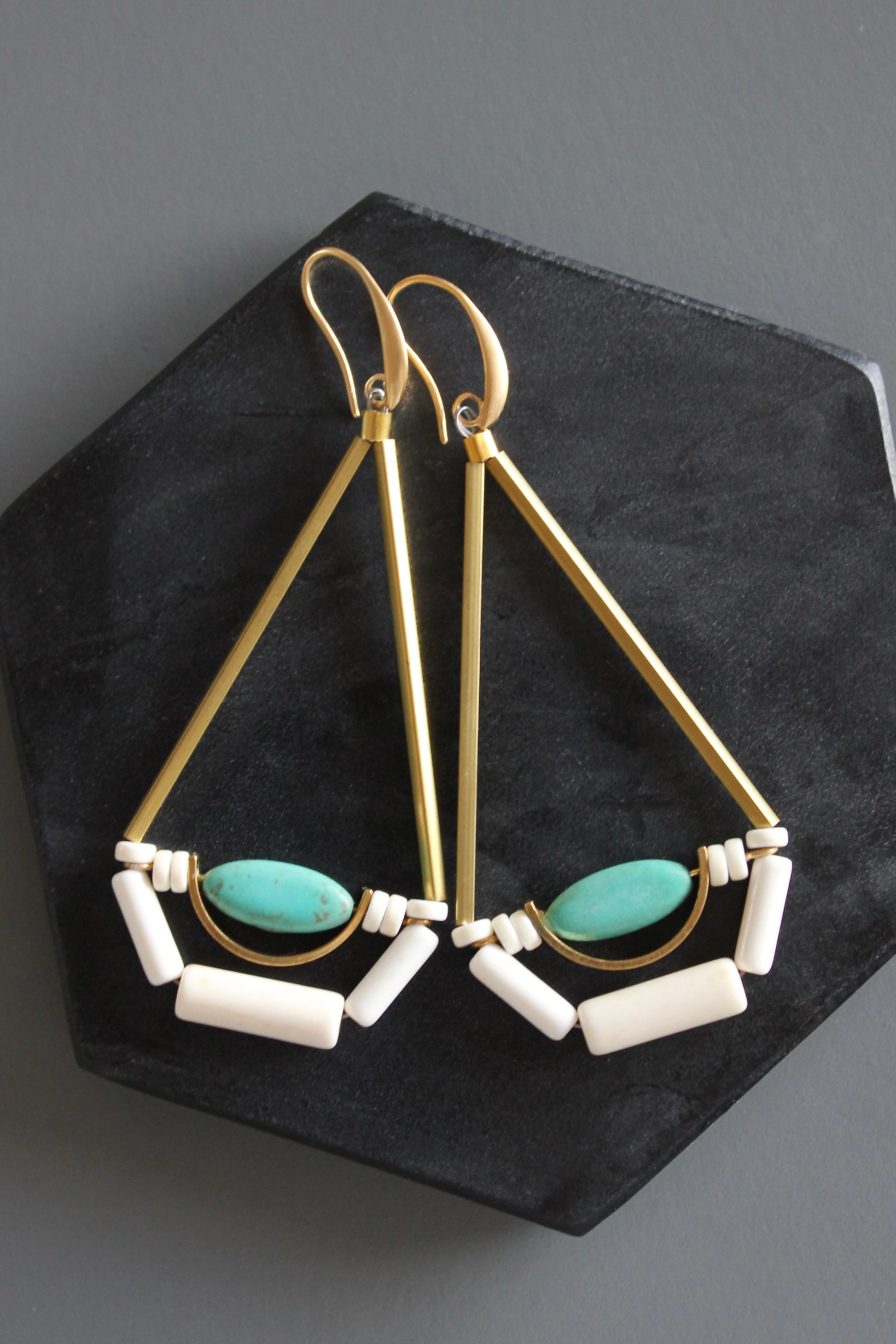 MLNE55 Turquoise and brass geometric earrings