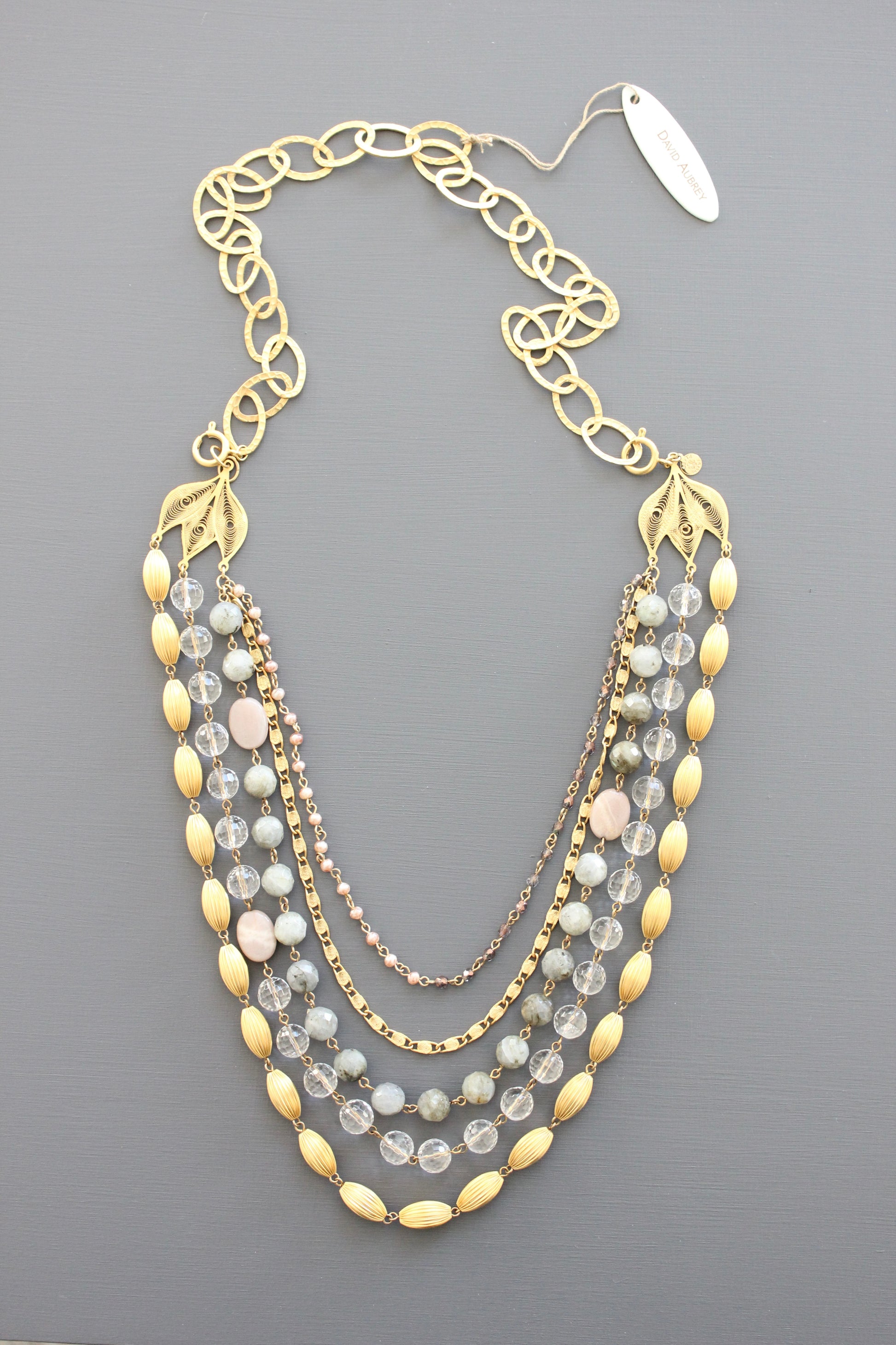 34 inch gemstone and glass necklace