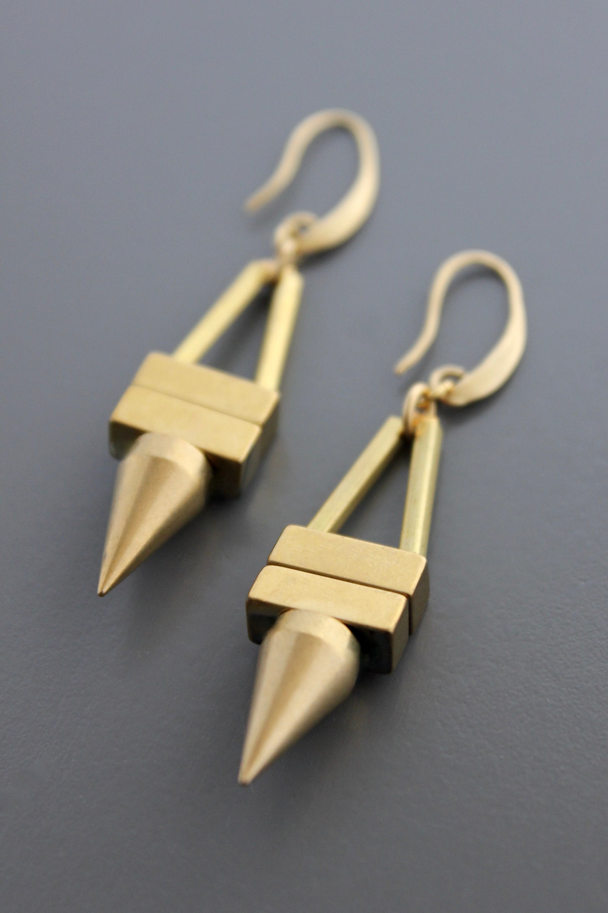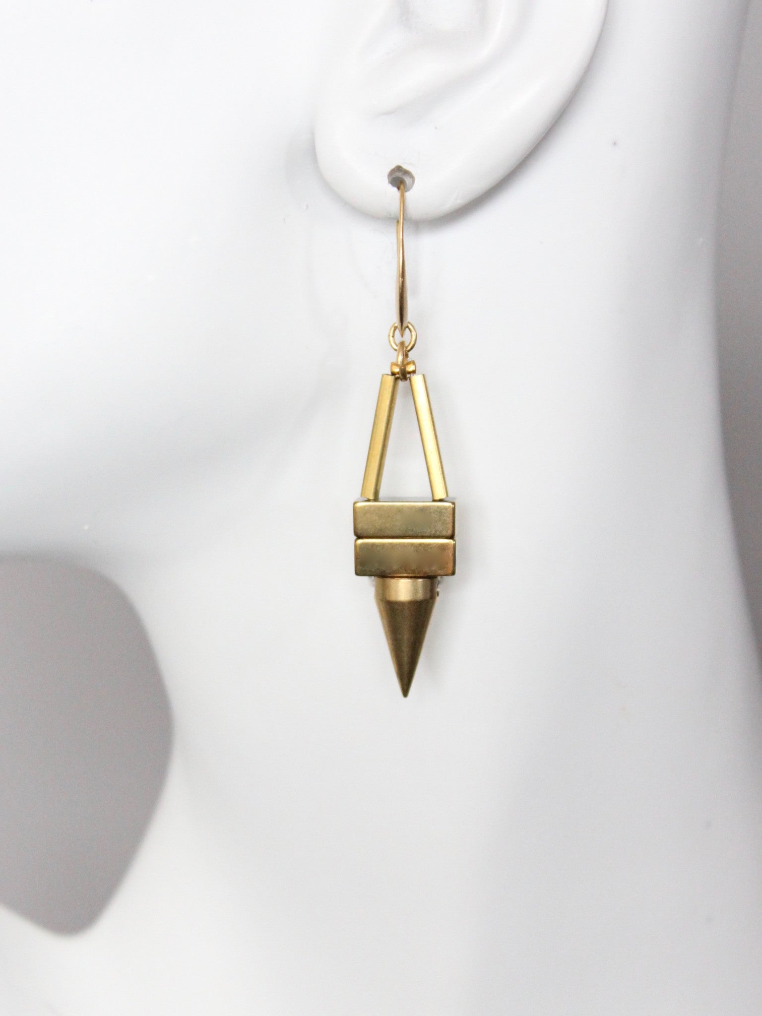 18k gold plated brass French hook earrings with brass tubes, plated hematite, and brass spikes.