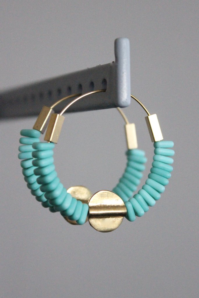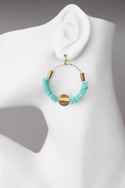 18k gold plated brass hoop with czech glass and brass. (mannequin photo for scale, large jump ring not included)