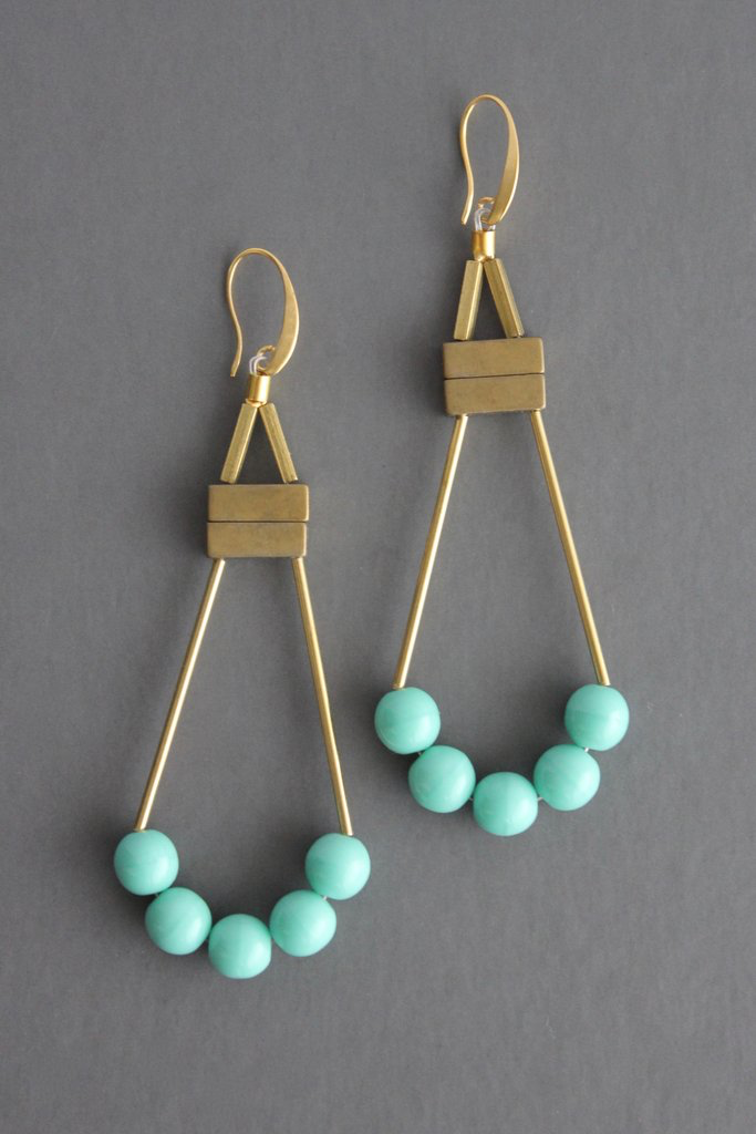 18k gold plated brass hook with czech glass, hematite, and brass.