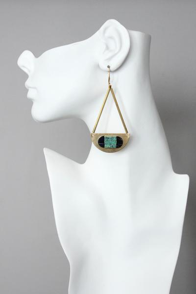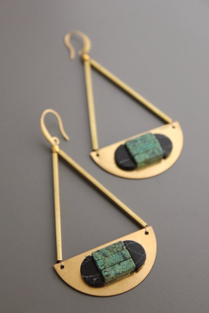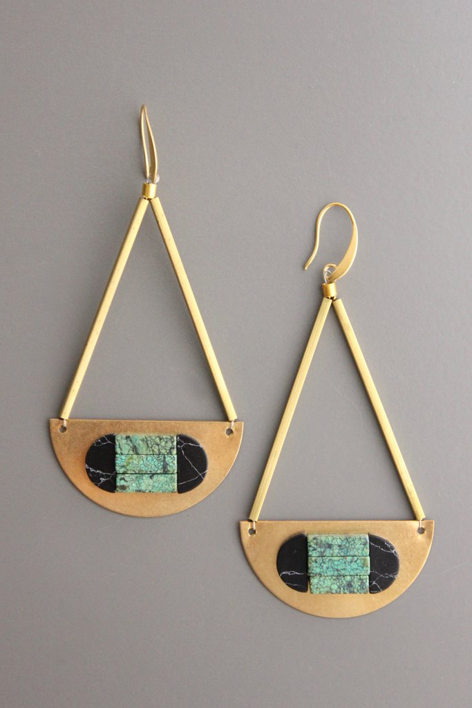 18k gold plated hook earrings with turquoise, brass, and magnesite.