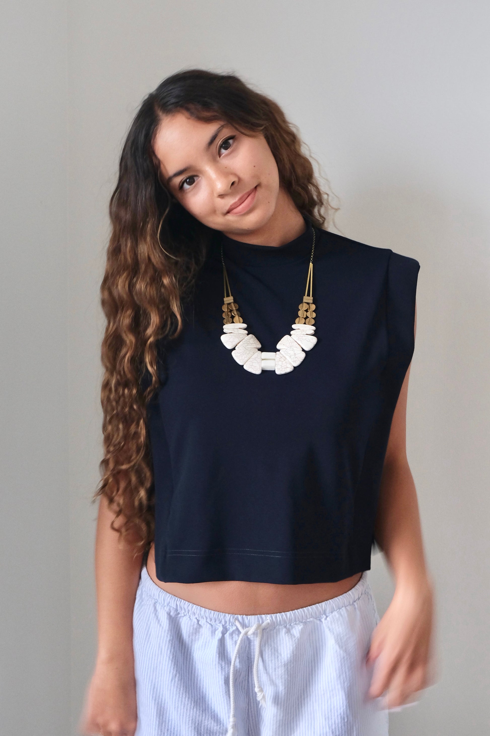 23" necklace with brass and magnesite. 2 inch extender.