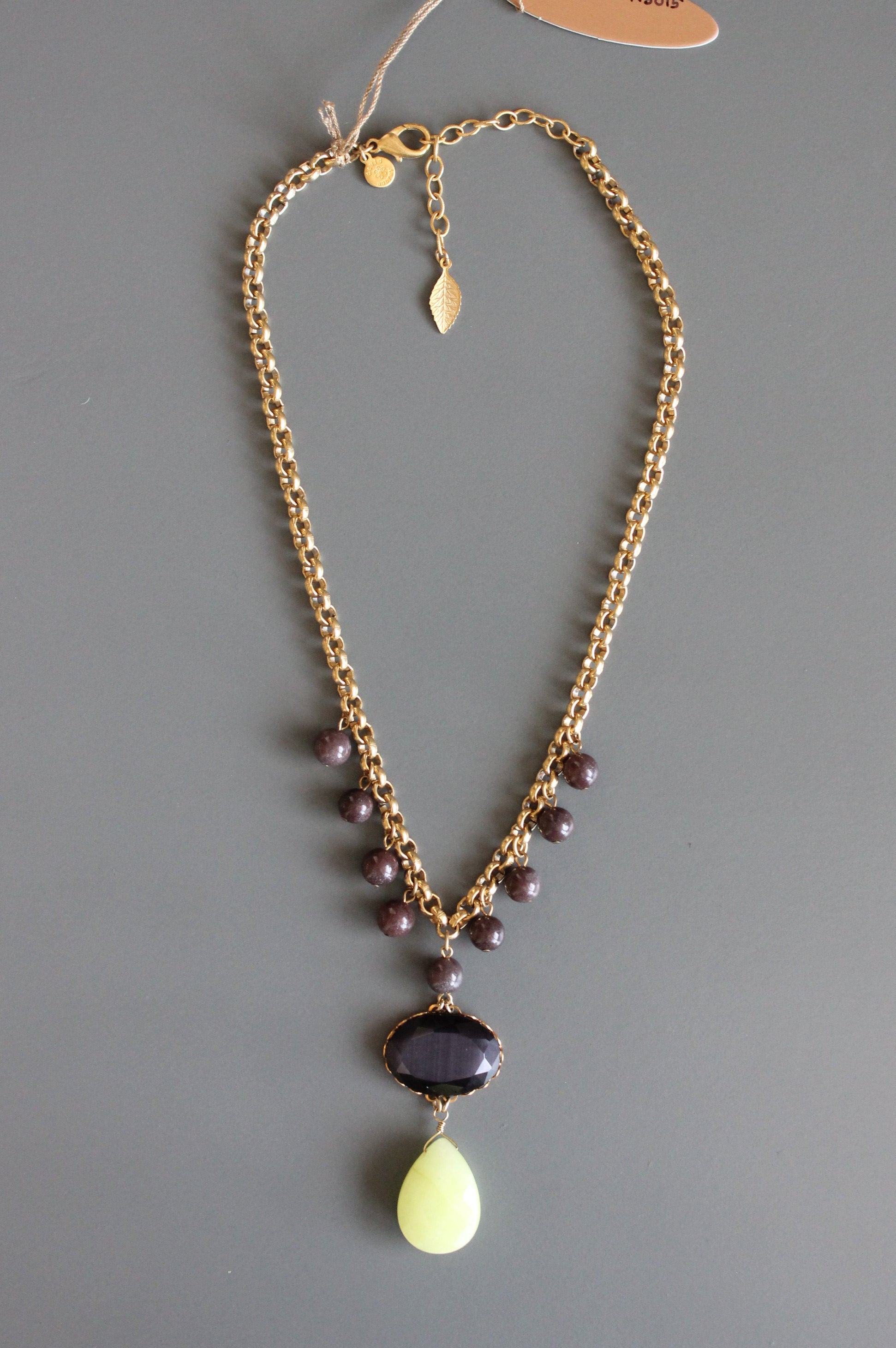15 inch chain necklace with glass beads and cat's eye pendant.