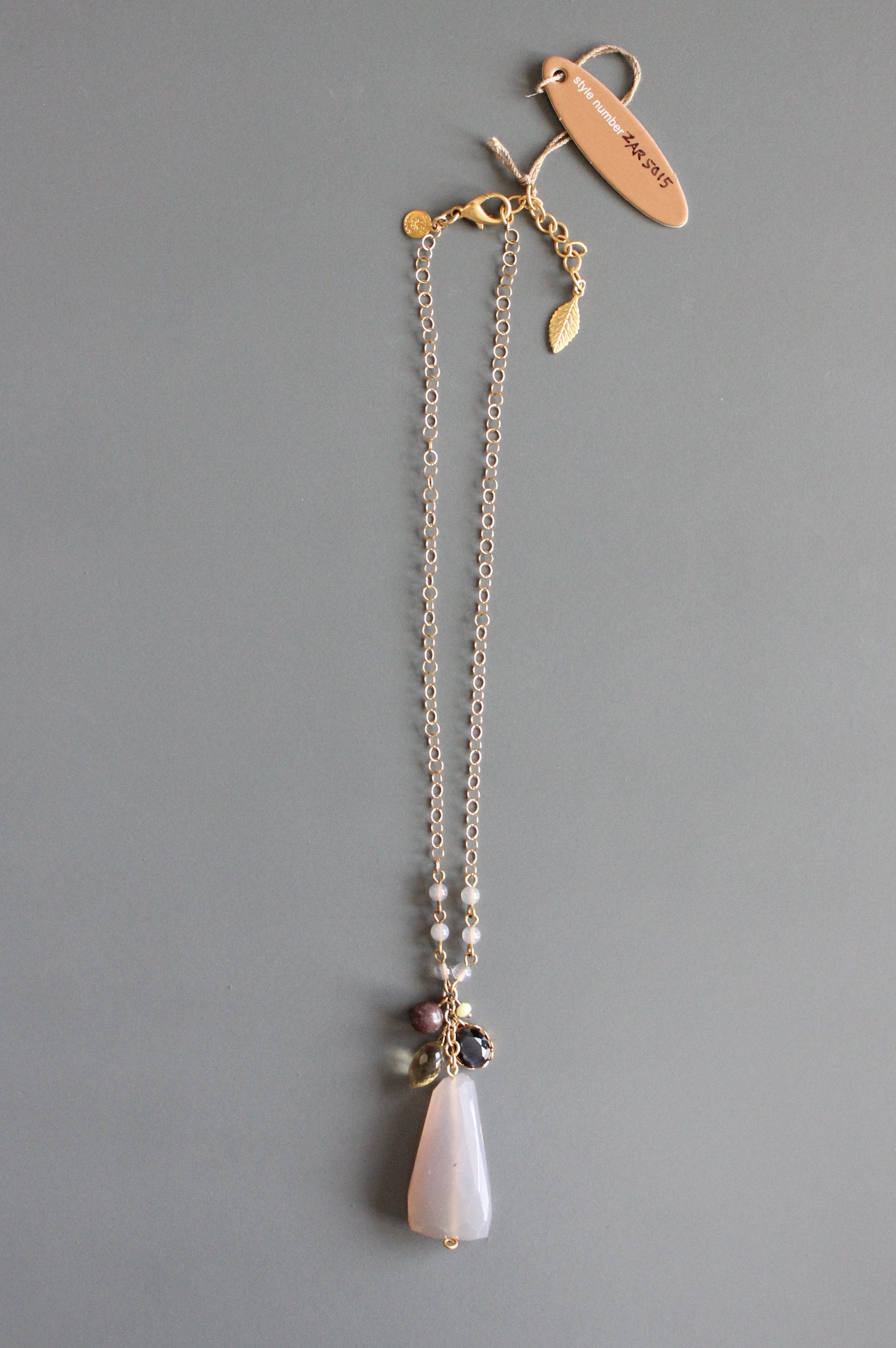 15 inch chain necklace with gemstones and chalcedony pendant.