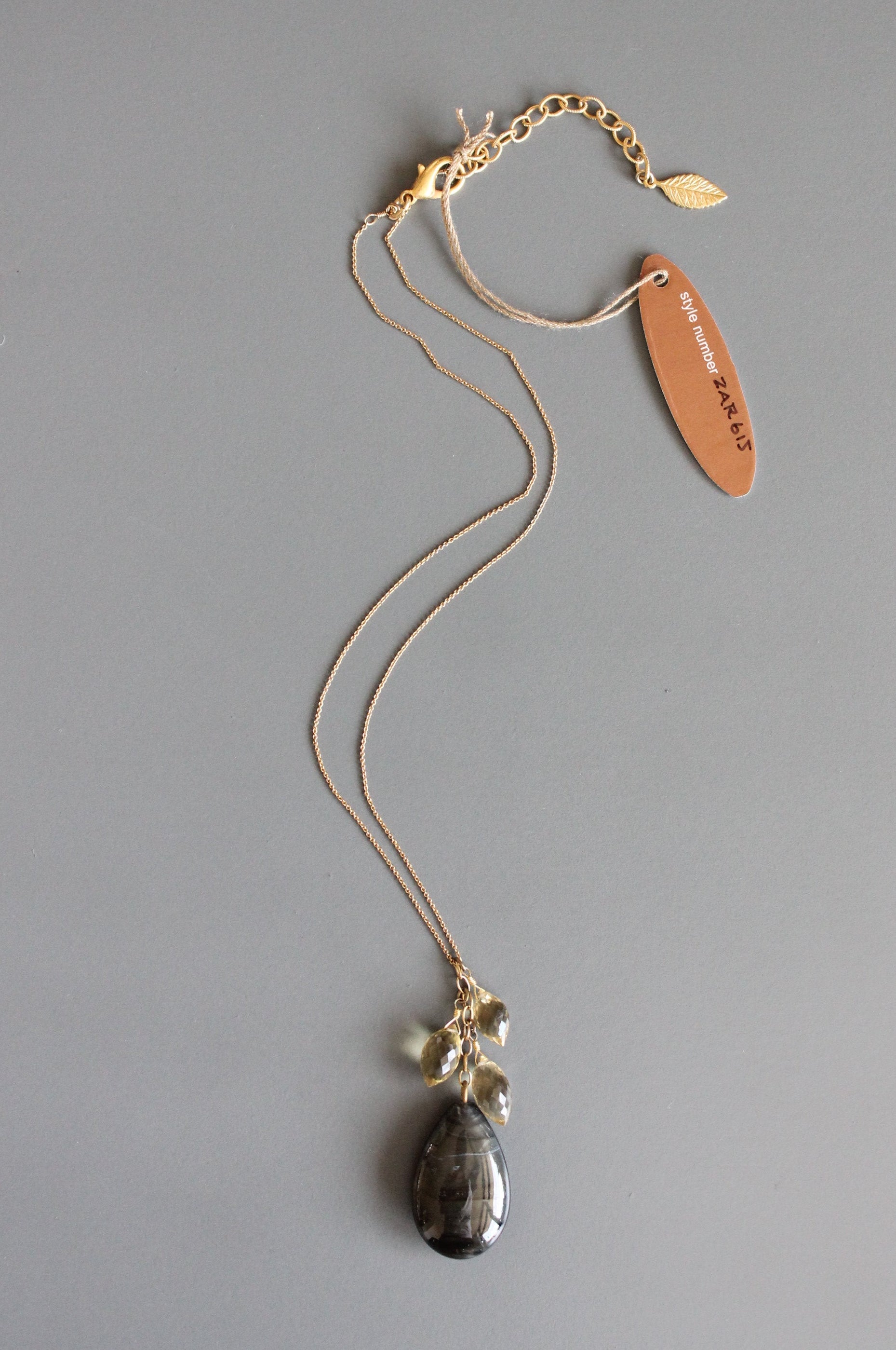 15 inch pendant necklace with 18k gold plated chain, glass, and quartz