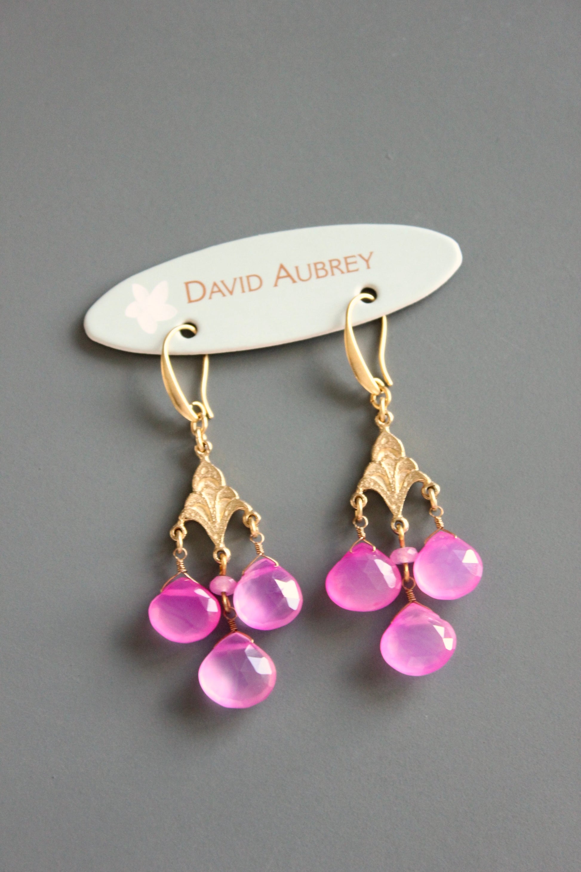 Pink chalcedony earrings. Each earring measures 2.37 inches from the top of the hook.